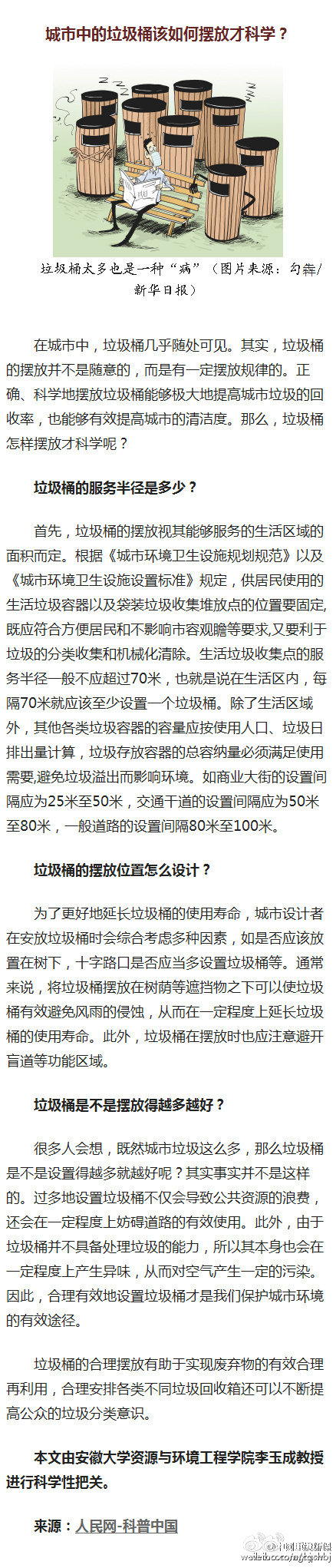 在城市中,垃圾桶几乎随处可见。其实,垃圾桶的摆放并不是随意的,而是有一定摆放规律的。正确、科学地摆放垃圾桶能够极大地提高城市垃圾的回收率,也能够有效提高城市的清洁度。垃圾桶太多也是一种“病”,来学习新知!